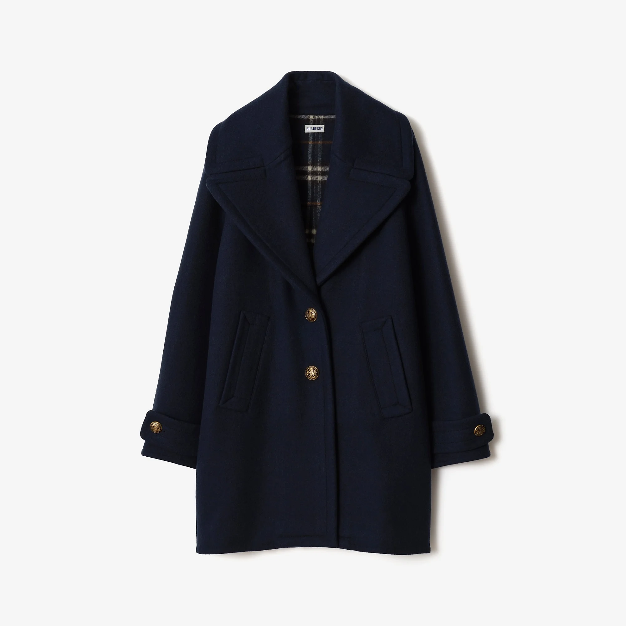 Product Details Oversized fit: our loosest cut, designed for exaggerated proportions. Consider taking a size down. A single-breasted coat made in Italy from double-faced wool twill, opening to the Burberry Check in tonal pilot blue. The domed buttons have an antique finish and feature our B crest flanked by a pair of unicorns – inspired by an archive emblem found on Thomas Burberry’s personal silverware. Cut to an oversized cocoon silhouette with exaggerated lapels. - Single-breasted button closure - Side welt pockets - Button-tab cuffs - Burberry Check inner and undercollar - Comes with a garment bag - Item 81176281 Size & Fit - Oversized fit: our loosest cut, designed for exaggerated proportions. Consider taking a size down. - Length: 90cm/35.4in (size UK 8) - Model’s height: 175cm/5ft 9in. Model wears size UK 8 Fabric & Care - 100% wool - Trim: 100% viscose - Pocket lining: 100% viscose - Specialist dry clean - Made in Italy