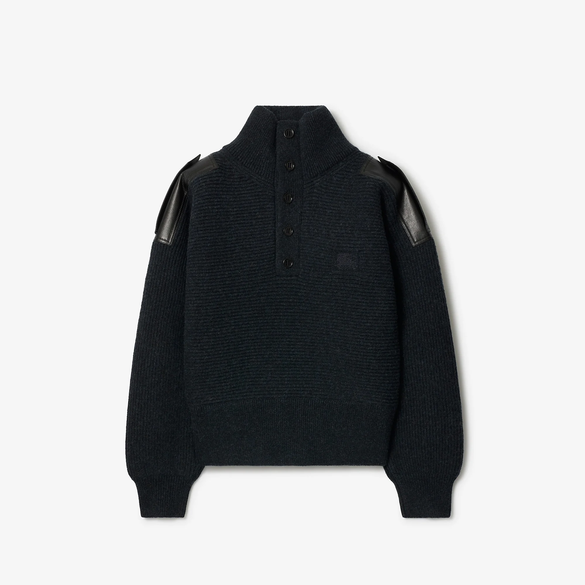 Product Details A turtleneck sweater made in Italy from a heavyweight wool blend, brushed on the inside for a soft feel. Debuted on the Burberry Winter 2025 runway, the rib-knit style is shaped to a relaxed fit and features leather epaulettes. Our Equestrian Knight Design is subtly cross-stitched at the chest. - Button placket - Embroidered Equestrian Knight Design at chest - Relaxed fit: a looser cut than our regular fit. - Item 81135671 Size & Fit - Length: 61cm/24in (size UK L) - Model’s height: 187cm/6ft 2in. Model wears size UK L Fabric & Care - 97% wool, 2% polyamide, 1% elastane - Trims: 98% wool, 1% elastane, 1% polyamide; 100% leather - Buttons: buffalo horn - Specialist dry clean - Made in Italy