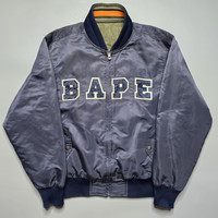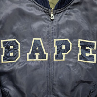 Bape - 2005 Bapesta Reversible Jacket Size Medium fit M-L Used Good Condition esp. for its Age Normal Sign of Use (Dirt, Crease and Scuff) Details: BAPE stiched logo across chest with snap enclosure pockets on front. Embroidered Ape face on back. Quilted STA pattern with embroidered NBA-like sleeve logo on reverse side. This jacket has some light yellowing from age and some wear shown. Very Rare! Same design of Jacket as seen on Mos Def at Bape NYC Store Opening (2005)