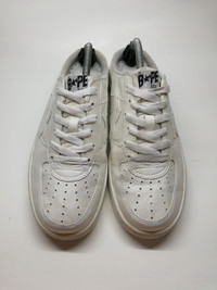 NIGO A Bathing Ape 2006 (Extremely RARE) OG Triple White Bapesta Open Sneaker Model: FS-030 Preowned: Fair Condition considering a 12 year old pair Cracking on leather, marks and dirt Minimal heeldrag OG None ** I detailed almost every angle of the shoe. Kindly check pics. Personally one of my grails Very comfy shoes perfect for Spring/Summer This pair dont come by easily and maybe the only Triple White Open Bapesta in the Internet. Never had a Re-issue 1 of 1 in Grailed. Details: - Leather Uppers - Rubber Sole - Elastic Band Inside shoes - Made in China - Guaranteed Authentic Listening to Offers. Lowballers will be blocked. Please bear in mind Shipping Cost when giving an Offer. Notice: Please Note: This item is (PRE-OWNED/USED) and therefore may have a degree of wear so manage your expectation! thank you PAYMENT and SHIPPING: * Accept "PAYPAL" Only * Will be shipped 1-3 days via DHL Express after the date of Purchase. PM me with any questions or concerns. * All SALES are FINAL. PLEASE leave you "Phone Number" on the note when making an order, as the shipping company always need the phone number to help delivering. Thank you very much for your visit. IG @lowkey_cartel --------------------------------------------------------------