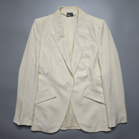 Alexander McQueen - One Button Wool Blazer Jacket Size 42 Condition: New without Tags * has some pen writing on care tags (can be erased) Product Information: Alexander McQueen includes a fitted ecru jacket. The single-breasted model with three pockets is made of soft wool fabric. Composition: Virgin Wool: 100%; Cupra lining: 100%; Country of design: Italy Country of origin: Italy.