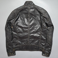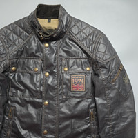 Belstaff - Founders Collection - Champion Jacket Size S Used Very Good Condition Normal Sign of Use Product Information: The Champion Blouson is a classic waxed cotton café racer style. This signature, vintage-inspired piece is part of the Founder's Collection, which celebrates the original craftsmanship of Belstaff jackets. In timeless black it features diamond quilting on the shoulders and a vintage logo patch on the chest. Two-way zip fastening with popper placket 5 external pockets 1 internal pocket Tab fastening at collar. Adjustable poppers to cuffs Underarm metal air vents Fabric logo patch to left sleeve Union Jack logo on left chest pocket Diamond quilting on shoulders & elbows.