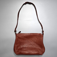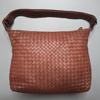 Bottega Veneta - Intrecciato Shoulder/Crossbody Bag - Vintage Maroon Used Good Condition Sign of Use Outer: Scuffs, Crease and Marks, Some Scuffs on Edge of the Straps Inner: Some pen marks, Dirt and creases Product Information This shoulder bag features a woven leather body, a flat leather shoulder strap, a top zip closure, and interior zip and slip pockets. DIMENSIONS: LENGTH: 26 cm Width: 35 cm Depth: 16 cm Shoulder Drop: 23