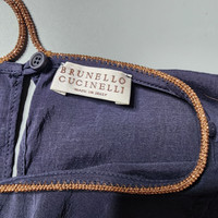Brunello Cucinelli - Monili Chain Motif Silk Camisole Size M Gently Used Very Good Condition Product Information: - Navy color elastane silk tank top with golden brass diamond monili chain motif - Made in Italy