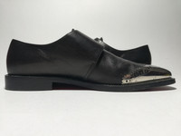 Christian Louboutin Vikram Double Monkstrap Shoes Leather: Flat Calf Size 40.5IT fits 7.5US - 8US Retails: 1150USD Good Condition Minimal Sign of Use (Scuff. Crease and Marks) OG None Description Men's black leather Christian Louboutin Vikram wingtip monk strap shoes with gunmetal steel toes with brogue accent, stacked heels and dual buckle closures at vamps. Details Heels: 1" Country of Origin: Italy Condition Good. Moderate wear at soles; slight scuffs throughout. Authentication: Authentic. Brand tag. High quality material. All item been describe/ pictured as detail possible as a proof of authenticity. ALL SALES are FINAL. No returns. Buy with confidence! Your satisfaction is my first priority. I stand behind the quality of each item and believe that I can work together with my customers to make every purchase a positive experience. Shipments are carefully inspected before leaving my store and I will provide best description of each item posted in my listings. Please Note: This item is (PRE-OWNED/USED) and therefore may have a degree of wear so manage your expectation! Please Leave Your PHONE NUMBER and Email Address on the NOTE while make A Purchase. Item will be posted by express shipping (DHL Express) with good tracking record in 1-3 business days after received cleared payment . Expect it to reach you in 3-5 business days only after item been shipped. Don't worry about customs tax or fees. I usually declare all items as 'Gift' & declare value of item lower than original price. **Please check my other listings and take advantage of combine shipping rates / special discount. IG lowkey_cartel