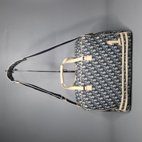 Christian Dior - FW01 Navy Trotter Duffle Bag Runway Piece Good as Travel or Weekender Bag Very Rare Used Good Condition Sign of Use * Minor Oxidation on White Leather ** Sign of Use on Coated Canvas Date Code/Serial Number: MU0071 Made In: Italy Measurements: Length: 19" Width: 7.5" Height: 10" Shoulder Strap: 13"-25" Handle Drop: 5" OVERALL VERY GOOD CONDITION ( 8/10 or AB ) Accessories: Shoulder Strap Signs of Wear: Exterior Canvas: Minor Markings Exterior Leather and Trim: Minor Markings, Little Scuffing Interior: Sign of Use Interior Pocket: Excellent Handle / Straps: Excellent Corners: Little Scuffing Edges: Little Scuffing Markings, Little to No Scuffing Hardware: Minor Rubbing, Minor Scratching Odor: None