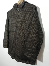 Fendi Vintage Zucca Monogram Reversible Hooded Jacket Size Medium fits S-M Measurements in Inches (Laid Flat) Shoulder Width: 18" Chest Width: 21" Length: 28" Sleeve Length: 22" Fit: Boxy Fit (80's Vibe) Very RARE! Excellent Condition Flawless! Details: - Brown/Black Fendi Zucca Pattern - Brown Heavy Fleece Reverse Side with Spell out Embroidery on chest - Fendi Zippers - 1 Hidden Chest Pocket / 2 Kangaroo Pockets - Authentic - Made in Italy Shipping from Asia. Notice: Please Note: This item is (PRE-OWNED/USED) and therefore may have a degree of wear so manage your expectation! thank you PAYMENT and SHIPPING: * Accept "PAYPAL" Only * Will be shipped 1-3 days via DHL Express after the date of Purchase. PM me with any questions or concerns. * All SALES are FINAL. PLEASE leave you "Phone Number" on the note when making an order, as the shipping company always need the phone number to help delivering. Thank you very much for your visit. IG @lowkey_cartel --------------------------------------------------------------