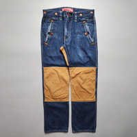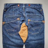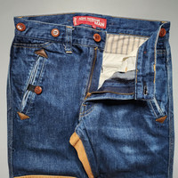 Levis x Junya Watanabe MAN- AW12 Contrast Patch Denim Cropped Jeans Size XS Used Good Condition Sign of Use (Crease, Scuffs and Fades) Product Information: Levis Contrast Patch Denim Jeans In Indigo from Junya Watanabe MAN Collection. Junya's collaboration with Levis presents these contrast patch jeans, featuring tan brown contrasting patches to the front and back crotch, with button detailing along the belt line, and extra back pockets for practical everyday wear. Built from durable cotton denim, these jeans will wear well with time. - Contrasting Yellow Stitching - Button Waist - Zip Fly - Belt Loops - Contrast Patch On Front In Tan Brown - Contrast Patch On Back Crotch In Tan Brown - Brown Button Detailing Along Belt Line - Buttoned Front Pockets - Brown Triangular Patch Detailing - Four Open Back Pockets - Main 100% Cotton | Patches 100% Cowhide Leather - Regular Fit - Made in Japan