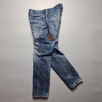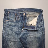 Levi's - 2009 Levi's Copper x Clot Jeans Size 30 Measurements in Inches (Laid Flat) Waist: 16" Inseam: 30" Front Rise: 10" Thigh: 12" Knee: 9" Leg Opening: 7.5 Good Condition Some Stains on Legs Beautifully Aged Japanese Indigo Jeans With Natural Clawmarks and Fading.