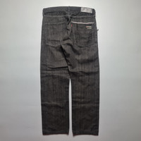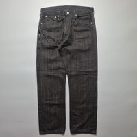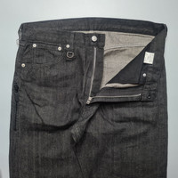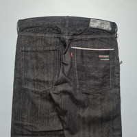Levi's Fenom - 2008 Black Disco Decoration Swarovski Selvedge Jeans Size 34 x 32 Measurements in Inches (Laid Flat) Waist: 18" Inseam: 32" Front Rise: 11.5" Thigh: 13.5" Knee: 10" Leg Opening: 8" Cut: 207 Fit: Mid Rise - Straight Leg Gently Used Very Good Condition Minor Sign of Use Product Information: DISCO Series from Levi's Fenom line emphasized on both embellishments and luxury. Swarovski crystals, decorative band around the waist and side zippers. As compliment, all components, including fragment design's lightning bolt logo, zippers, buttons, D-Ring, are also in matching decorative colorways. Constructed from lightweight black selvedge denim with Fenom's purple stitching, the 207 also feature another Fenom signature, the Swarovski & Chain Zip Side Pocket. Limited Edition - Made in Japan
