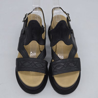 Maison Margiela MM6 - Platform Sandals Size 36 Used Good Condition Product Information Look you casual best as you step out in these embroidered leather sandals. These platforms with a leather sole are just what you need to keep your feet comfortable. These sandals from MM6 Maison Margiela will lend a stylish and playful edge to your feet. This black pair will accentuate and compliment your outfit. Gender: Women Lining Material: Leather Exterior Material: Leather Platform Height: 6 cm Insole Material: Leather
