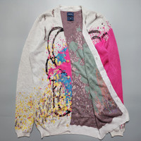 Maison Miharayasuhiro - Paint Splattered Effect Distressed Knit Cardigan Size 46 fits Small (US Mens) Gently Used Minor Sign of Use Maison Mihara Yasuhiro Splatter Knit. Look at how insanely detailed the knit is you have to look closely to truly appreciate what a piece of art this is. The colours just pop truly a statement piece of knitwear. Great condition some light signs of use. Made in Japan. 100% cotton construction. If you want a 3D knit piece then look no further.