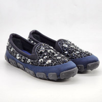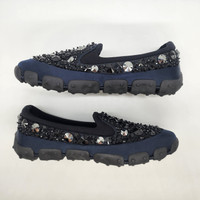 Miu Miu - Slip On Embellished Flats Size 37 Gently Used Very Good Condition Minor Sign of Use Product Information Beautifully crafted using fabric and satin, these Miu Miu slip-on sneakers are sure to keep you comfortably stylish. Featuring crystals, sturdy soles, and lightly padded insoles, these shoes will be a great addition to your closet. Gender: Women Size: 37 Exterior Material: Fabric, Satin Lining Material: Fabric Insole Material: Fabric Sole Material: Rubber