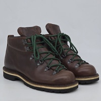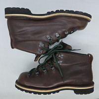Danner x Tanner Goods - Mountain Trail Left Bank Size 8US fits 9US Width: EE (Extra Wide) Insole Length: 27 cm Outsole Length: 30 cm Outsole Width: 10.5 cm Gently Used Very Good Condition Sign of Use Uppers: Creases and Scuffs Sole: Minor Heeldrag Product Information Danner, in collaboration with Tanner Goods, has made an exemplary modern classic in the Danner Mountain Trail Left Bank boot. Made in the Portland, Oregon Danner factory, this special version of Danner’s 650 boot is constructed with Horween Russet Chomexcel Leather from Chicago’s fantastic Horween Leather Co. The boots also happen to be fully leather lined, so you know they’ll last — even under a heavy workload. The Mountain Trails stand atop a Vibram Gumlite outsole that’s re-craftable, and come with two sets of laces in Evergreen and Cream.