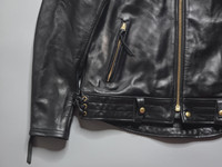 Kadoya -CHW-JP Single Riders Leather Jacket Size 4L (JPN XL) fits L-XL (US) Gently Used Very Good Condition Minor Sign of Use (Creases) * BOA Collar and Belt Not Included Product Overview Color: Black Material: Surface/Hard Steer Lining: Polyester Twill SPECIFICATION ・Head Factory pattern that creates comfort with the latest sizing and design balance ・Quilted padding Comfort Max (Dupont) that is ultra-lightweight, highly moisturizing, waterproof and windproof. Can be used according to the season. ・Detachable collar boa (button or zipper) Combines high heat retention and comfort ・Detachable 10mm thick BACK BORN PAD made of two layers of hard and soft foamed urethane Detailed Description Based on the motif of a police style highway jacket, it achieves a relaxed and natural line. Although it is made of robust hard steer leather, the HF pattern ensures smooth movement. The removable collar boa and removable Comfort Max liner suppress the drop in body temperature during long runs in the middle of winter. Attaching the separately sold police belt will transform it into an even wilder style.