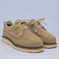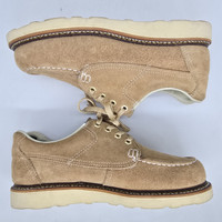 Thorogood - Suede Moc Toe Oxford - Beige Size 8.5 D fits 9US Gently Used Very Good Condition Sign of Use Replaced Insole Pad with Original Birkenstock Footbed Sole: Minor Heeldrag