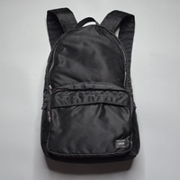 Porter - Tanker Daypack Dimensions: 28cm x 40cm Depth: 13cm Used Good Condition Normal Sign of Use * Theres a minor flaw in the zipper rail still good to use but might need to be replaced in the future. Product Information: The ‘Tanker’ series was created in 1983 by iconic Japanese bag manufacturer Porter and remains inspired by the MA-1 flight jacket uniform of the U.S. Air Force. Made from a custom-developed 3-layer fabric, Tanker products are renowned for a highly dense and resilient twill exterior with an ultra-soft, padded interior. The 10L Daypack is equipped with two padded straps, a central zip compartment, and a multi-pocket front compartment. Detailed with high-vis contrast lining and an interior - A4 size velcro sleeve. - Three-layer fabric - Water-resistant - Heavy duty metal zippers - Coated aluminum hardware - Adjustable straps - A4 size interior sleeve - Two exterior pockets - Made in Japan