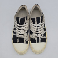 Rick Owens Drkshdw - FW16 Mastodon Bleach Vomit Ramones Size 43 Used Good Condition Normal Sign of Use Uppers: Fabric Patina, Some marks and Creases (adds character imo) Sole: Some scuffs and marks Product Information: Rick Owens Drkshdw Ramones Low Bleach Vomit with Corduroy Uppers and Milk Rubber Sole. Insanely rare. I don’t think there is a single pair for sale in this size and cw right now.