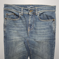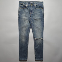 Saint Laurent Paris - Knee Ripped Skinny Jeans Size 29 Gently Used Very Good Condition Sign of Use * Altered Length Product Information Deep blue cotton denim ripped skinny jeans from Saint Laurent featuring stonewashed, ripped detailing, belt loops, front button and zip fastening, classic five pockets, skinny fit.
