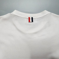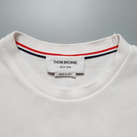 Thom Browne - Side Four Bar Pique T-Shirt Size 0 fits XS Mens Used Good Condition Sign of Use (Fabric Piling, Marks) Details: Bring a sense of Italian luxury to your casual-day wardrobe with this crisp white tee from Thom Browne. Minimally styled, it’s crafted from soft cotton and decorated with the American designer’s signature stripes at one side and school-like brand patch at the hem. Elsewhere, tricolour grosgrain tape details the nape and neckline for a premium finish. - 100% Cotton - Ribbed Crewneck - Made in Italy -Retails: 510USD