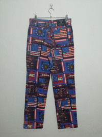 Versace Jeans Couture (Rare) Vintage Medusa Flags Printed Denim Trousers Size 28 Good Condition **Faded Care Tag Measurements in Inches (Laid Flat) Waist: 14.5" Inseam: 28" Front Rise: 10" Outseam: 38" Thigh: 11.5" Knee: 8.5" Leg Opening: 7" Fit: Mid Rise Tapered Detailing: High fashionable trousers made by the house of Versace. Flag painted trousers with iconic Medusa graphics. - Ittierre Medusa Rivets - Lampo Zipper - Medusa Engrave Tack Button - Made in Italy Listening to Offers. Lowballers will be blocked. Please bear in mind Shipping Cost when giving an Offer. Notice: Please Note: This item is (PRE-OWNED/USED) and therefore may have a degree of wear so manage your expectation! thank you PAYMENT and SHIPPING: * Accept "PAYPAL" Only * Will be shipped 1-3 days via DHL Express after the date of Purchase. PM me with any questions or concerns. * All SALES are FINAL. Thank you very much for your visit. IG @lowkey_cartel --------------------------------------------------------------