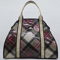 Vivienne Westwood - Orb Glitter Check Yasmine Bag - Large Used Very Good Condition Sign of Use * There some Scuffs at the Bottom Product Information - Material: PVC Coated Canvas and Patent Leather - YKK Zippers - Made in Italy
