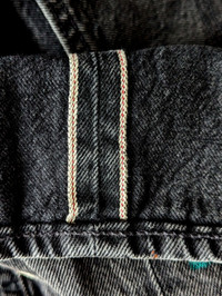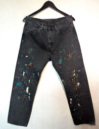 This Levi's 505 Selvedge jeans are from the 2021 'Painted' collaboration with END. - https://www.endclothing.com/gb/features/end-x-levis-painted - Heritage selvedge denim in a faded black wash - Hand-painted splatters to front and back - 4 front pockets, 2 large inside pockets Great, as-new condition with minor (repaired) damage to inside left hem, see last picture.