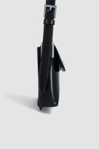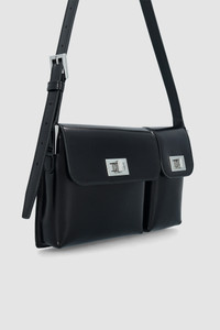 Semi patent leather shoulder bag with an adjustable strap, clasp closure, and two compartments. Can also be worn cross-body. Features a back slip pocket, synthetic suede lining, and a raised logo patch. The style is from LWG certified leather. DETAILS - Leather shoulder/crossbody bag - Crafted in Italian cowhide - Structured silhouette - Adjustable leather handle - Two compartments - Flap closure with clasp - Silver-toned, branded hardware - Synthetic suede lining - Fits an iPhone - Made in Bulgaria SIZE AND FIT - Depth 5cm - Height 15.5cm - Width 27.5cm - Handle Drop 25-40 adjustable