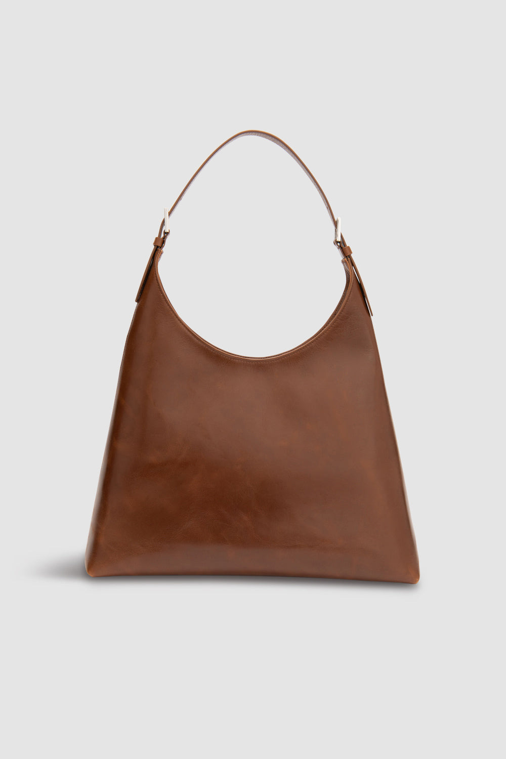 Large structured leather shoulder bag with adjustable shoulder strap and magnetic closure. Features one large compartment with micro suede lining and interior branded leather patch pocket. Fits a 13-inch laptop. DETAILS - Large structured shoulder bag - Adjustable shoulder strap - Magnetic closure - One large compartment - Metal hardware - Large interior branded leather patch pocket 183x90mm - Micro suede lining - Made in Bulgaria SIZE AND FIT - Height: 26 cm - Width: 39 cm - Depth: 11 cm - Handle Drop: 27 cm - Strap Length: 40 cm