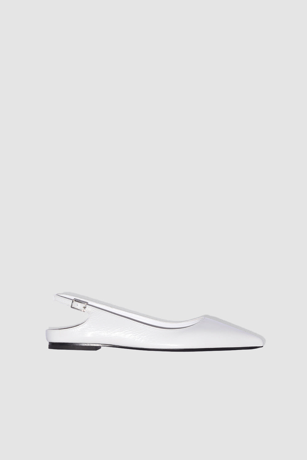 Creased calf leather slingback flats with a low stacked heel and silver-toned metal hardware. Finished with a buckle fastening and pointed toe. Made from LWG-certified leather. DETAILS - Leather slingback flat - Low stacked leather heel - Buckle fastening - Silver-toned metal hardware - Pointed toe - Made in Bulgaria SIZE AND FIT Fits true to size. Italian/European sizing