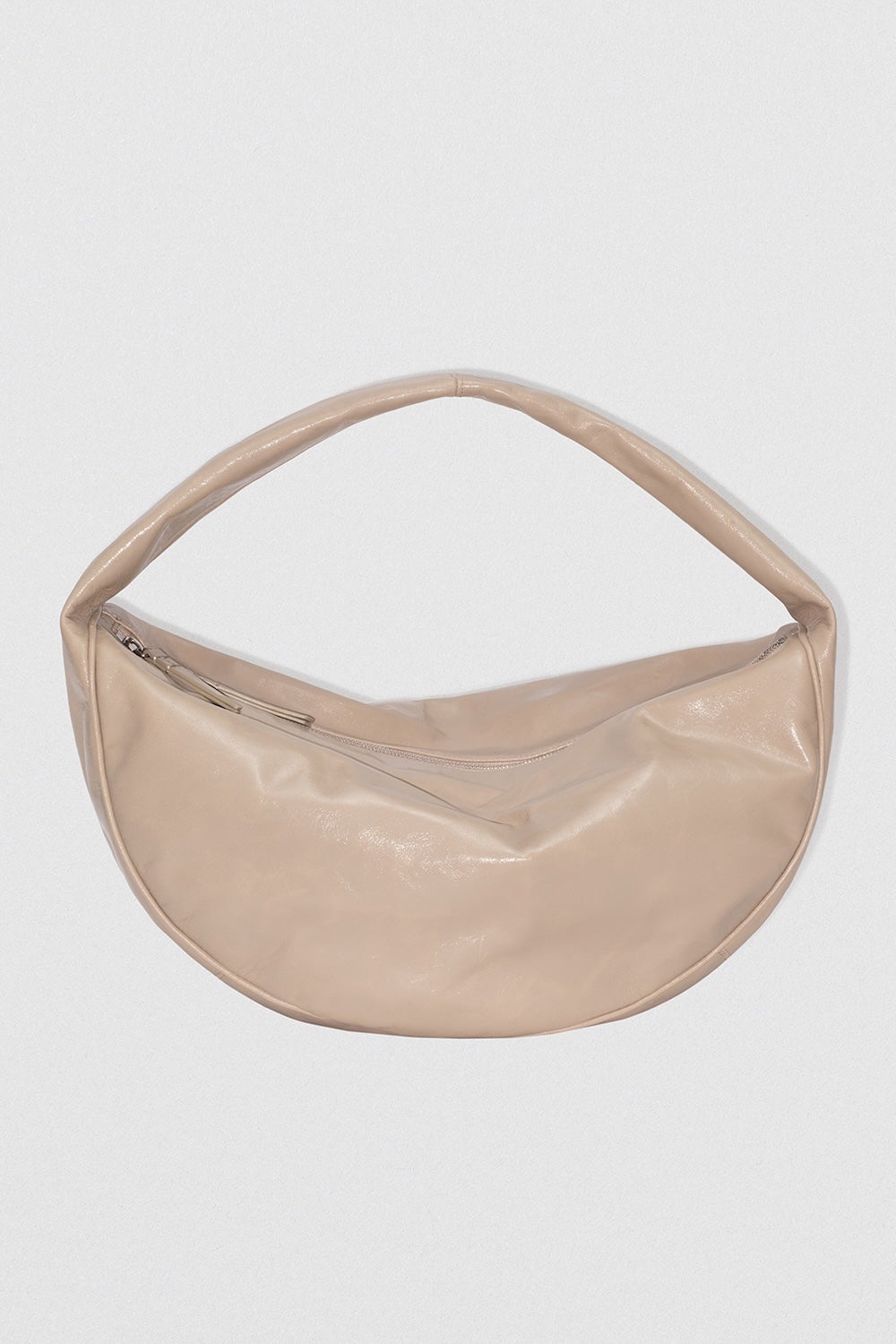 Creased calf leather shoulder bag with a slouchy silhouette, single strap, and zip closure. Features black cotton lining, an inside pocket, and a raised logo patch. The style is from LWG certified leather. DETAILS - Leather shoulder bag - Slouchy silhouette - Single shoulder strap - Zip closure - Black cotton lining - Inside pocket - Inside Patch 63x56mm with 45mm raised logo - Made in Bulgaria SIZE AND FIT - Depth 15 cm - Height 25 cm - Width 40 cm - Strap 48 cm - Handle drop 18 cm