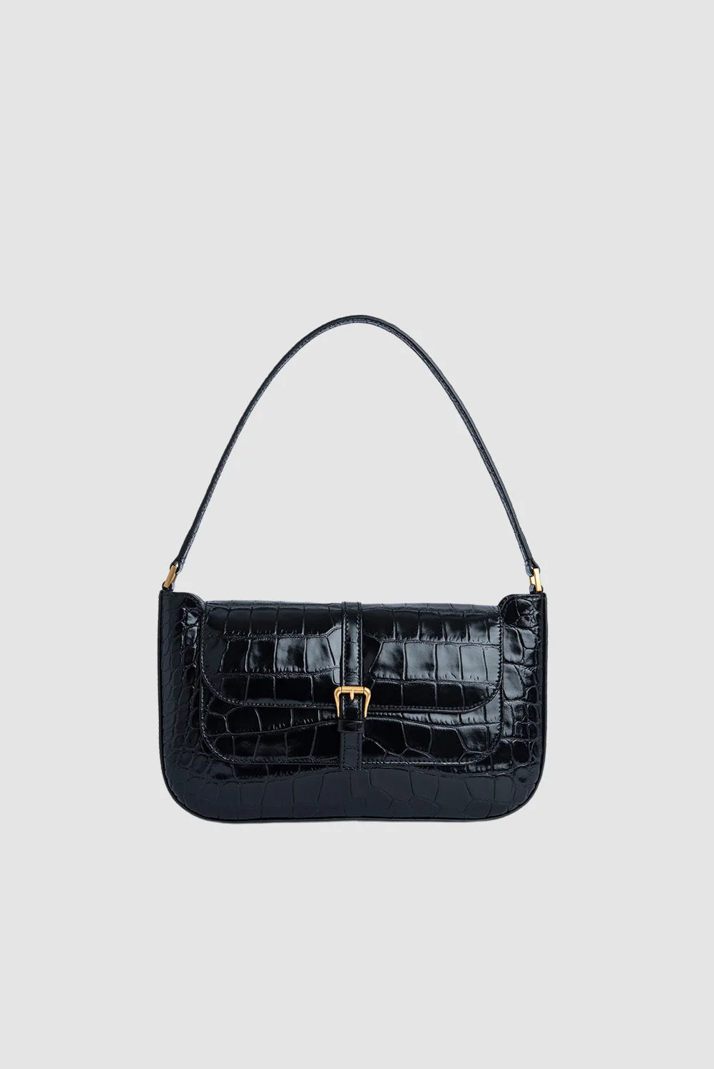 Miranda Black Croco Embossed Leather Shoulder Bag