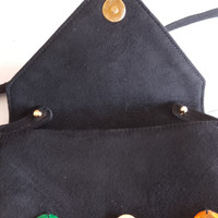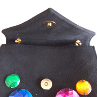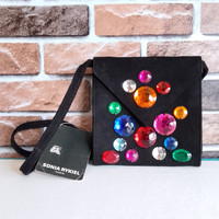 Vintage Sonia Rykiel black shoulder bag. Black color lambskin velvet with rhinestone. Detachable strap and turn into purse. Magnetic closure. Very good condition without stains and defects. Height : 6 inches Width : 6 inches Depth : 1 inches Strap Drop : 22.5 inches * Shipping using Malaysia Post. * Delivery in 14-21 days after shipping date.