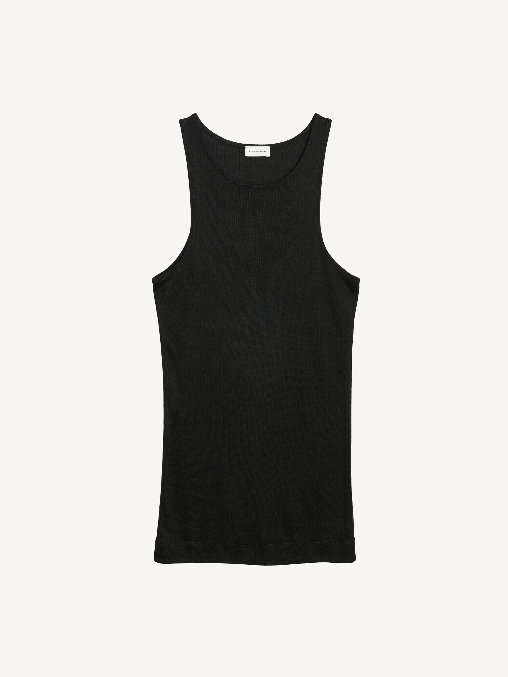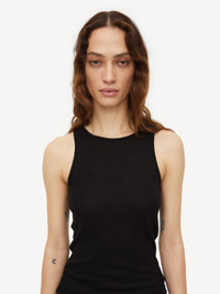 An everyday foundation, the Amieeh is a classic tank made from softly ribbed lyocell. With it's slim fit and flattering cut, this is an easy layering piece. Wear yours underneath chunky knits or alone with wide-leg trousers on warmers days. - Slim fit - Model is 178 cm and is wearing a size S - Racer back - Round neck DETAILS COLOUR Black COMPOSITION 100% lyocell CARE Wash at 30°c PRODUCT CODE Style #101791050
