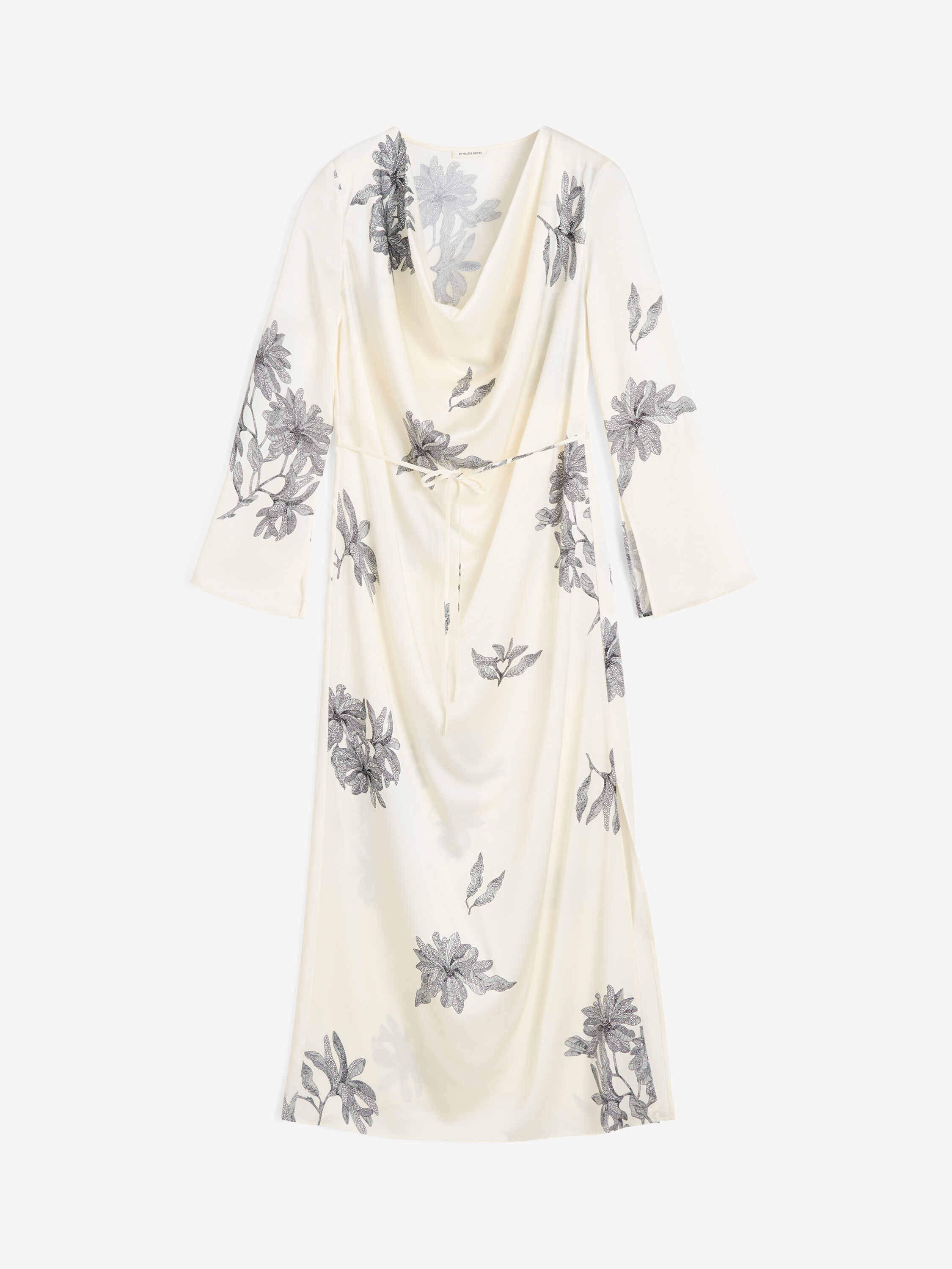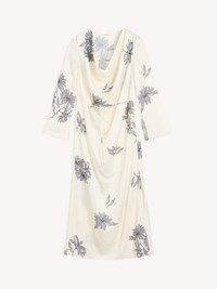 As evening takes shape, opt for the Carrie maxi dress. The delicate silhouette is heroed by a low draped neckline, neat slits on both sleeves and a thin waist belt that’s fully detachable. Wear with low heels for the season’s soirees. - Regular fit - Model is 177 cm and is wearing a size 36 - Low draped neckline - Detachable belt - Straight silhouette - Long sleeves with slits - Side slit - Eastman Naia™ is a cellulosic fibre produced from responsibly sourced wood pulp. It is quick drying, biodegradable, supremely soft and comfortable to wear DETAILS COLOUR Floral Print COMPOSITION 85% acetate, 15% polyester CARE Delicate machine wash at 30°c PRODUCT CODE Style #103740QF2