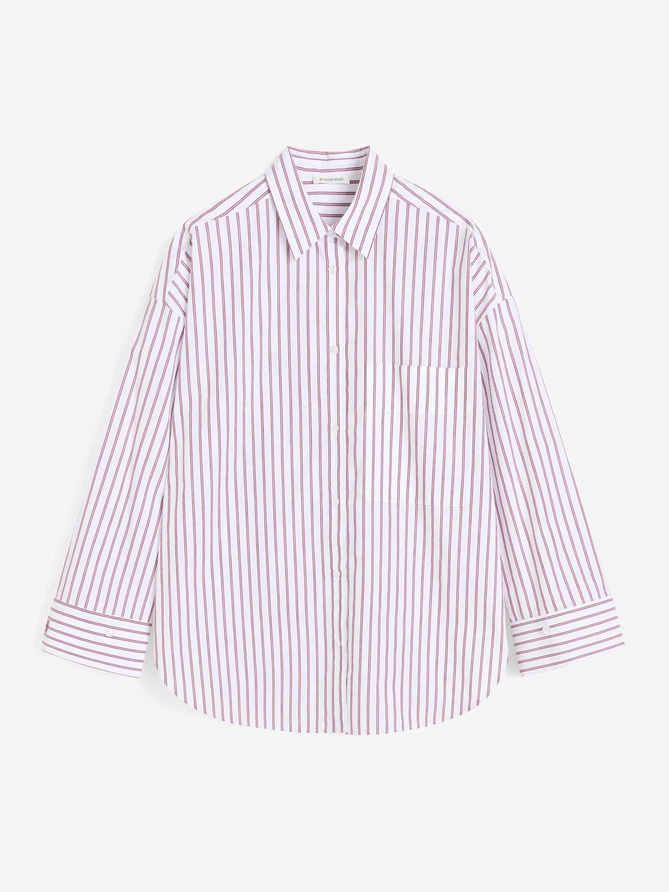 A classic shirt will carry you beyond a single season, and this organic cotton style is a piece you'll reach for time and time again. It has buttons throughout the front and a smart shirt collar. Tuck it into tailored trousers or layer over boyfriend jeans. - Oversized fit - Model is 177 cm and is wearing a size 36 - Designed with an oversized fit, so we recommend you take your own size for the intended fit or one size down for a more classic fit - Button placket - Rounded hems - Front patch pocket DETAILS COLOUR Cabernet Stripe COMPOSITION 100% cotton organic CARE Wash at 30°c PRODUCT CODE Style #103165QG7