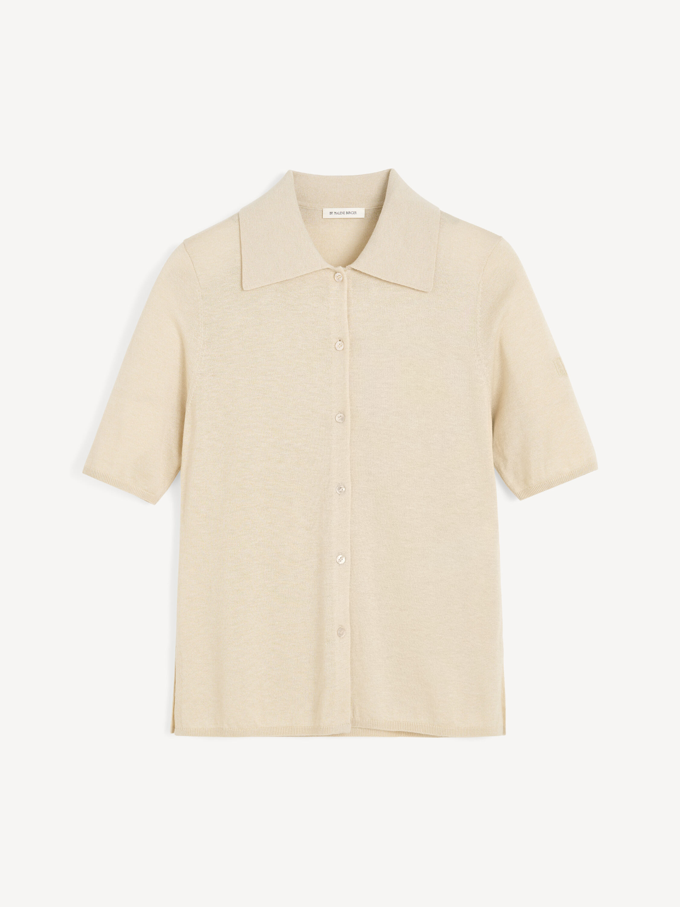 Made in a muted hue that works with everything in your wardrobe, the Dotta blouse is made from an ultra-lightweight mix of wool and silk. Inspired by the classic polo, it has a sharp collar and buttons down the front. Wear over the Edello dress as a cover-up. - Regular fit - Model is 178 cm and is wearing a size S - Button closure - Sharp collar - Embroidered monogram - Contains TENCEL™ Lyocell fibers - TENCEL™ is a trademarks of Lenzing AG - This product contains 32% RWS wool, certified by Control Union, CU 877742. The Responsible Wool standard (RWS) verifies animal welfare and land management requirements and tracks it from the farm to the final product DETAILS COLOUR Oyster Gray COMPOSITION 60% lyocell (tencel (TM)), 32% wool, 8% silk CARE Hand wash PRODUCT CODE Style #1036191CT
