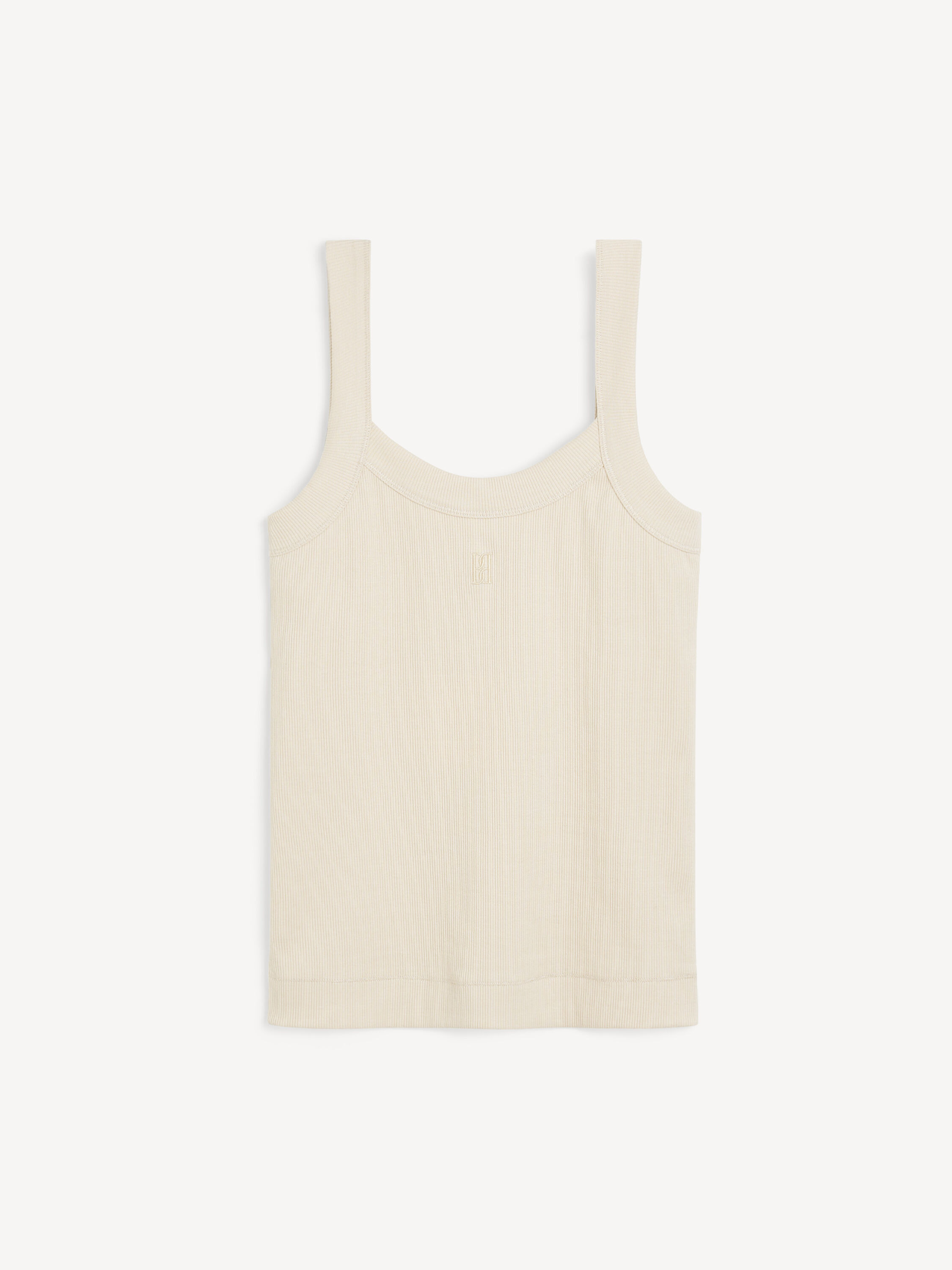 A versatile minimalistic tank top – such as the Frillio design – will slot right into any modern woman’s wardrobe. Made in an organic cotton mix with stretch, the easy silhouette falls from wide straps and has a low round neckline. Notice the small, embroidered monogram on its front. - Slim fit - Wide straps - Low neckline - Embroidered monogram DETAILS COLOUR Oyster Gray COMPOSITION 98% cotton organic, 2% elastane CARE Wash at 30°c PRODUCT CODE Style #1031071CT