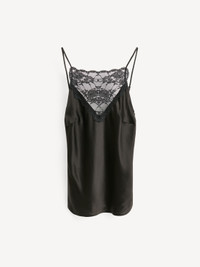 Slip right into the delicate Leeba top. Made to wear as a layering piece both day and night, the minimal design features lace details and adjustable straps. - Slim fit - Model is 177 cm and is wearing a size 36 - Adjustable straps - Lace detailing - Eastman Naia™ is a cellulosic fibre produced from responsibly sourced wood pulp. It is quick drying, biodegradable, supremely soft and comfortable to wear DETAILS COLOUR Black COMPOSITION 76% acetate, 24% polyester CARE Delicate machine wash at 30°c PRODUCT CODE Style #102286050