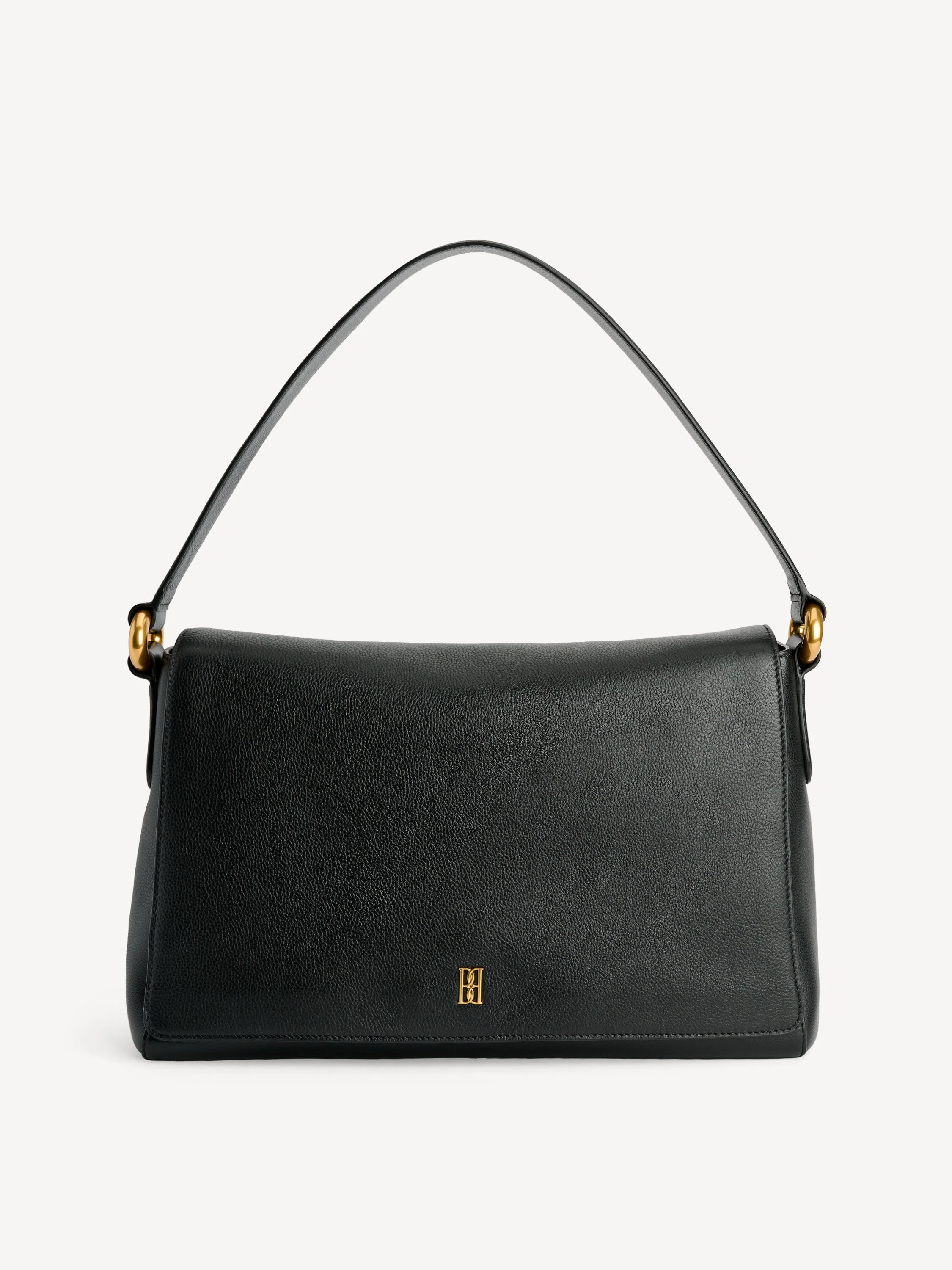 A timeless shoulder bag made for days on the go – such is the Lelou design. Made in the supplest leather, it will safely store your computer and other essentials. It features a wide strap, a front flap opening, magnetic closure, a small inside pocket and the distinct monogram emblem. - Model is 177 cm - Wide strap - Front flap - Magnetic closure - Inside pocket - Monogram emblem - 38,5 x 23,5 x 13,5 cm DETAILS COLOUR Black COMPOSITION 100% cow leather CARE Clean with damp cloth PRODUCT CODE Style #103622050