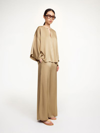 By Malene Birger Lucee trousers woven from a fluid blend that sweeps into a flared leg. They're designed for a high waist and a regular fit which makes them ideal to style with a cropped top and heels for special occasions. - Regular fit - Eastman Naia™ is a cellulosic fibre produced from responsibly sourced wood pulp. It is quick drying, biodegradable, supremely soft and comfortable to wear - Flared leg DETAILS COLOUR Kelp COMPOSITION 85% acetate, 15% polyester CARE Delicate machine wash at 30°c PRODUCT CODE Style #1025531Y7