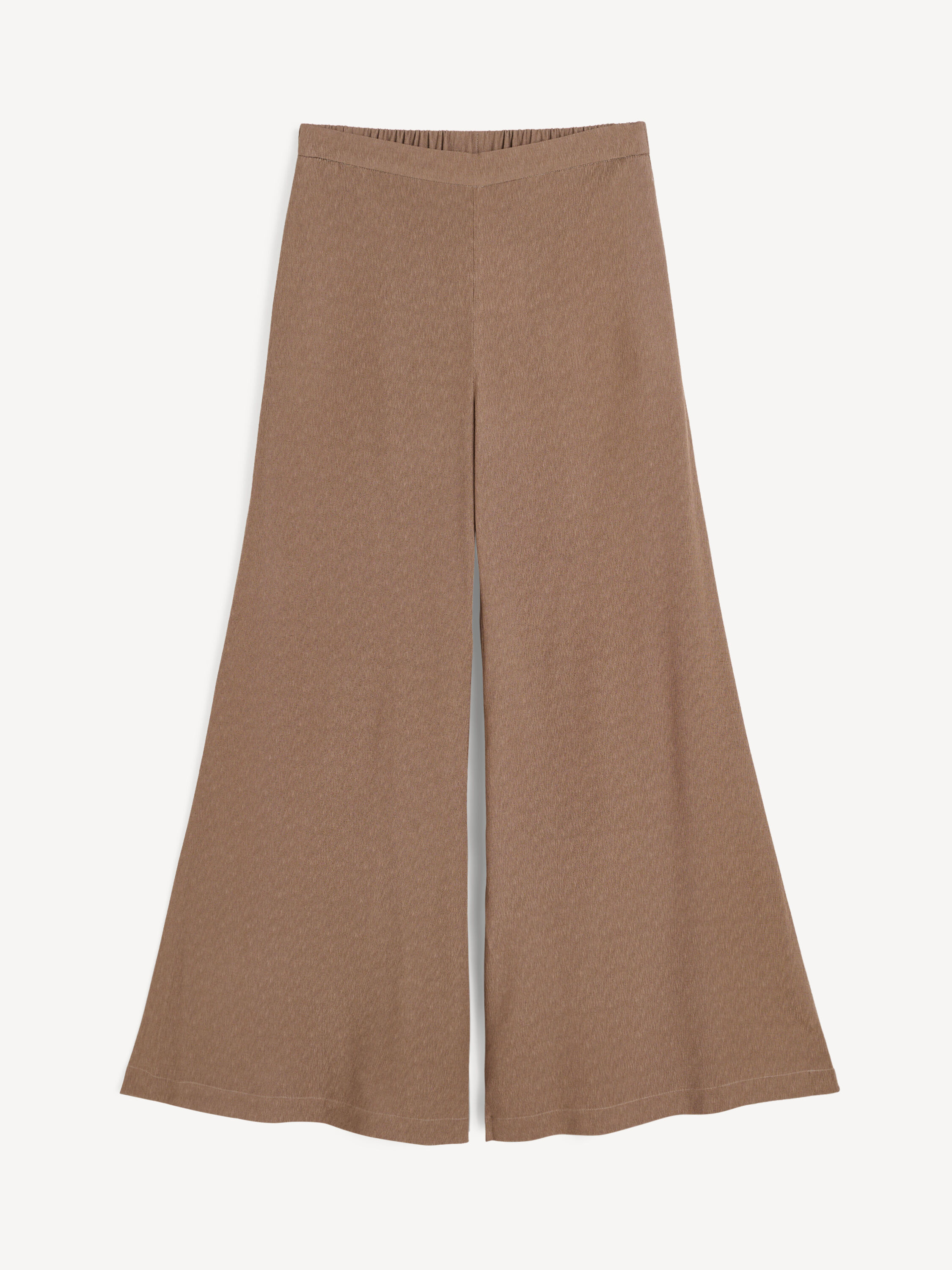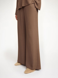 By Malene Birger’s Lucee trousers feature wide flared legs and a high waist. Take them from desk to dinner paired with an oversize blazer or bohemian blouse. - Regular fit - Model is 177 cm and is wearing a size 36 - Contains LENZING™ ECOVERO™ viscose fibers - "LENZING™ and ECOVERO™ are trademarks of Lenzing AG. - Flared legs DETAILS COLOUR Chocolate Chip COMPOSITION 65% viscose (lenzing (TM) ecovero (TM) ), 35% viscose CARE Hand wash PRODUCT CODE Style #10378911A