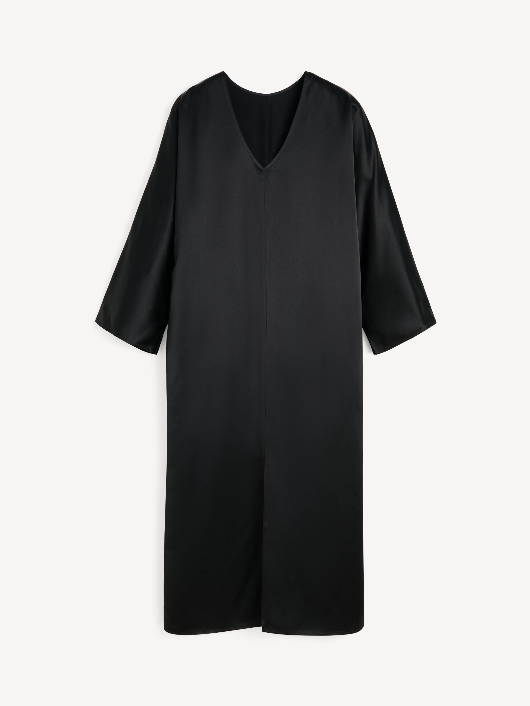 You will reach for this ankle-gracing design repeatedly across seasons for all types of soirees. With its billowing dolman sleeves, V-neck and high front slit, the Lucina dress is elegant and alluring. The tranquil silhouette makes it ideal to dress up or down depending on your mood. - Loose fit - Model is 175 cm and is wearing a size 36 - Eastman Naia™ is a cellulosic fibre produced from responsibly sourced wood pulp. It is quick drying, biodegradable, supremely soft and comfortable to wear - Ankle-length - Front slit - V-neck - Dolman sleeves - Unlined DETAILS COLOUR Black COMPOSITION 76% acetate, 24% polyester CARE Delicate machine wash at 30°c PRODUCT CODE Style #103808050