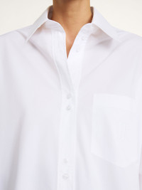 This organic cotton style is a piece you will reach for again and again. The Maye shirt is crafted in a tunic style with button closure, wide cuffs, and a front pocket. Notice the embroidered monogram that give detail to the clean silhouette. - Oversized fit - Button closure - Wide cuffs - Embroidered monogram - Rounded hems - Front pocket DETAILS COLOUR Pure White COMPOSITION 100% cotton organic CARE Wash at 30°c PRODUCT CODE Style #102457090