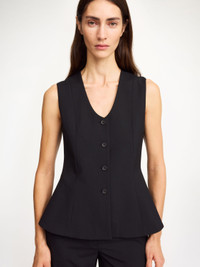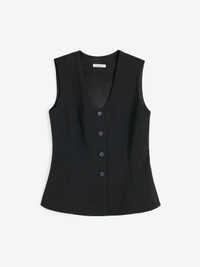 Made to add depth and detail to your daily edit, the Merlin design is a feminine version on the classic waistcoat. The single-breasted silhouette that accentuates the waist, closes with buttons down the front, has a deep neckline and a single back vent. Wear with your tailored separates. - Regular fit - Model is 177 cm and is wearing a size 36 - Single-breasted - Button closure - Deep neckline - Back vent DETAILS COLOUR Black COMPOSITION 69% polyester recycled, 30% viscose (lenzing (TM) ecovero (T M) ), 1% elastane CARE Dry clean only PRODUCT CODE Style #103275050