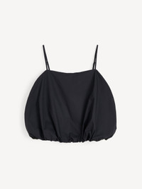 The crisp organic cotton and voluminous shape define the Mia top. The minimalistic silhouette is tempered by an elastic hem and adjustable straps. Wear with its matching Aubrey skirt and the Sallon belt on sunny days. - Loose fit - Model is 177 cm and is wearing a size 36 - Adjustable straps - Elastic hem - Straight neckline DETAILS COLOUR Black COMPOSITION 100% cotton organic CARE Wash at 30°c PRODUCT CODE Style #103346050