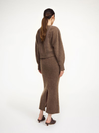 An easy – and ultrawarm – layering piece as the temperatures drop, the Pernille cardigan is made in a soft mohair mix. Detailed with both vertical and horizontal stripes, the button closure design adds a graphic element to your existing edit – and contrasts the plush fabrication. - Regular fit - Model is 177 cm and is wearing a size S - This product contains 72% RMS mohair, certified by Control Union, CU 877742. Responsible Mohair Standard (RMS) verifies animal welfare and land management requirements and tracks it from the farm to the final product - Button closure - Bell sleeves - Collarless DETAILS COLOUR Chocolate Chip COMPOSITION 72% mohair, 26% polyamide, 2% elastane CARE Hand wash PRODUCT CODE Style #10344211A