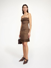 Equally eclectic and sensual, the Valia dress is made for the season’s soirees. The mini design has thin adjustable straps, smock details and tactile fringes. Let the fitted dress stand on its own by pairing simply with kitten heels. - Slim fit - Model is 175 cm and is wearing a size 36 - Contains LENZING™ ECOVERO™ viscose fibers - "LENZING™ and ECOVERO™ are trademarks of Lenzing AG - Elastic fabrication - Fringe details - Straight neckline - Adjustable thin straps - Unlined DETAILS COLOUR Chocolate Chip COMPOSITION 100% viscose CARE Dry clean only PRODUCT CODE Style #10379911A