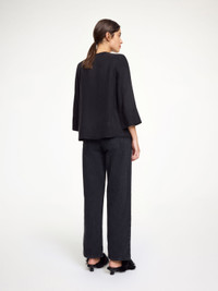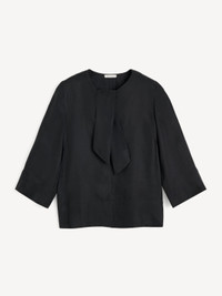 A blouse that transitions easily from the office to the after-hours, the Vega design is made in a matte yet tactile fabrication. The straight silhouette is heroed by the V-neck fastens, that can be folded simply or tied as a bow. Wear with tailored trousers, jeans or a maxi skirt – depending on your mood - Regular fit - Model is 178 cm and is wearing a size 36 - V-neck with ties - Cropped sleeves - Unlined DETAILS COLOUR Black COMPOSITION 57% cupro, 43% viscose CARE Hand wash PRODUCT CODE Style #103590050