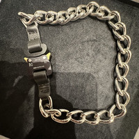 silver chain buckle necklace with leather details